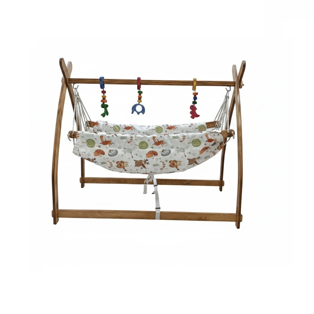 زیبایی را به اتاق کودک خود دعوت کنید! طراحی خاص و سرخ پوستی این گهواره، آن را به یک عنصر دکوراتیو شیک و مدرن در اتاق کودک تبدیل کرده است. این محصول همراه با سه عدد آویز گهواره چوبی با طرح‌های جذاب عرضه می‌شود که علاوه بر سرگرم کردن نوزاد، به تقویت مهارت‌های دیداری و حرکتی او نیز کمک می‌کند. نصب و راه‌اندازی این گهواره بسیار ساده بوده و فضای کمی را اشغال می‌کند، که آن را برای استفاده در آپارتمان‌ها و فضاهای کوچک نیز ایده‌آل می‌سازد.