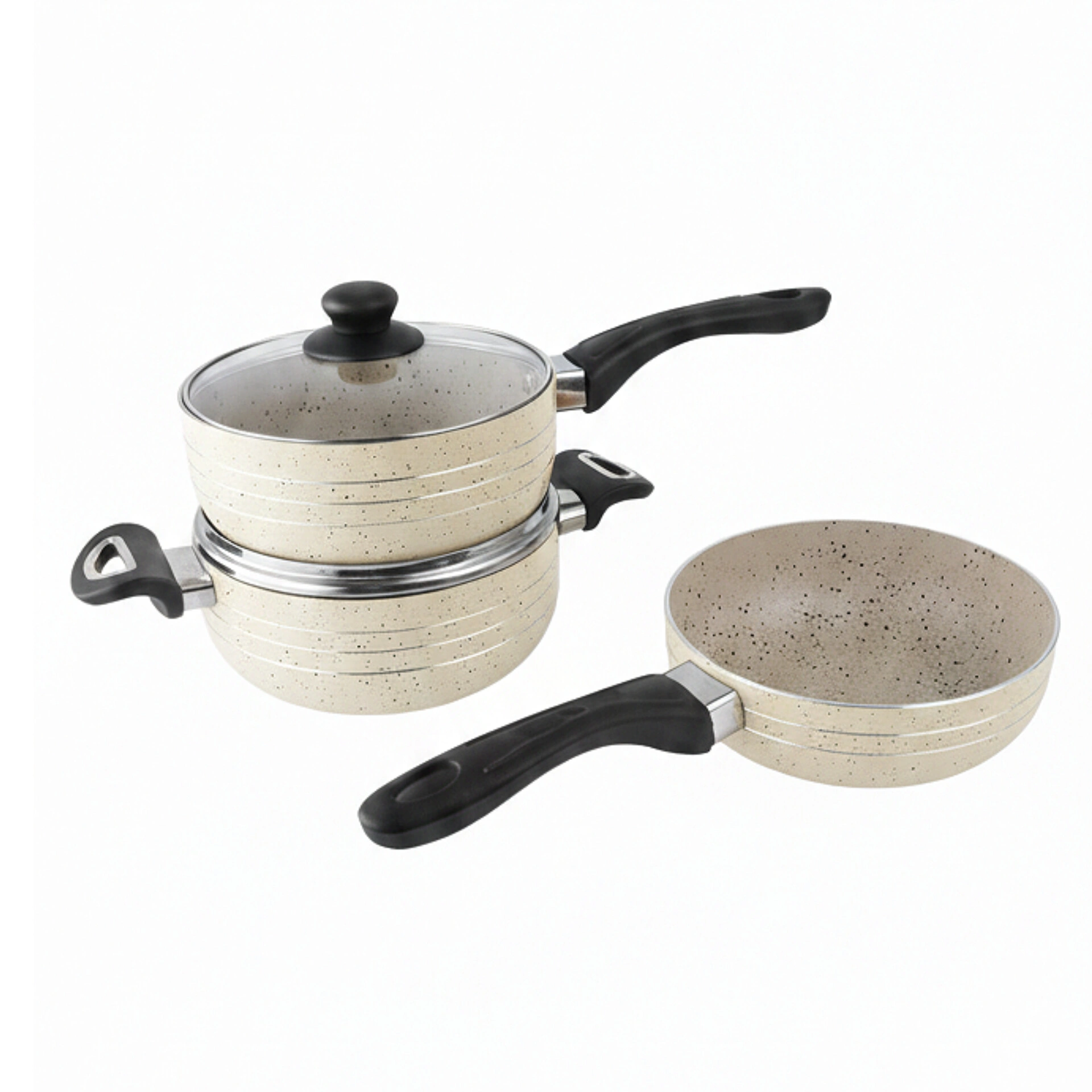 سرویس قابلمه ۴ تیکه وایو جنس تفلون | پختوپز آسان با پوشش نچسب و شستشوی راحت