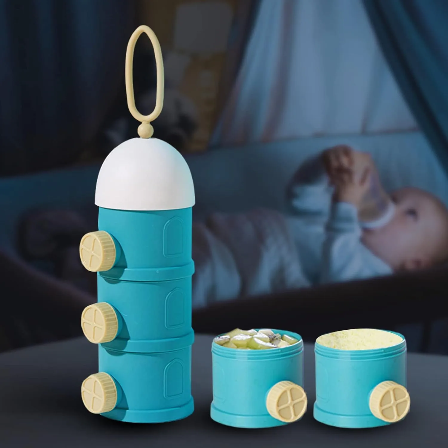 ویژگی کلیدی این محصول داشتن محفظههای جداگانه است. با دو تا چهار بخش مستقل، میتوان شیر خشک، آجیل، میوه خشک یا بیسکوییت کودک را بدون ترکیب شدن طعم یا بو نگهداری کرد. برخی مدلها دارای درب چرخشی یا قیفیشکل هستند که هنگام ریختن پودر شیر، دقیقا مقدار لازم خارج شود و هیچ ریختوپاشی ایجاد نشود.