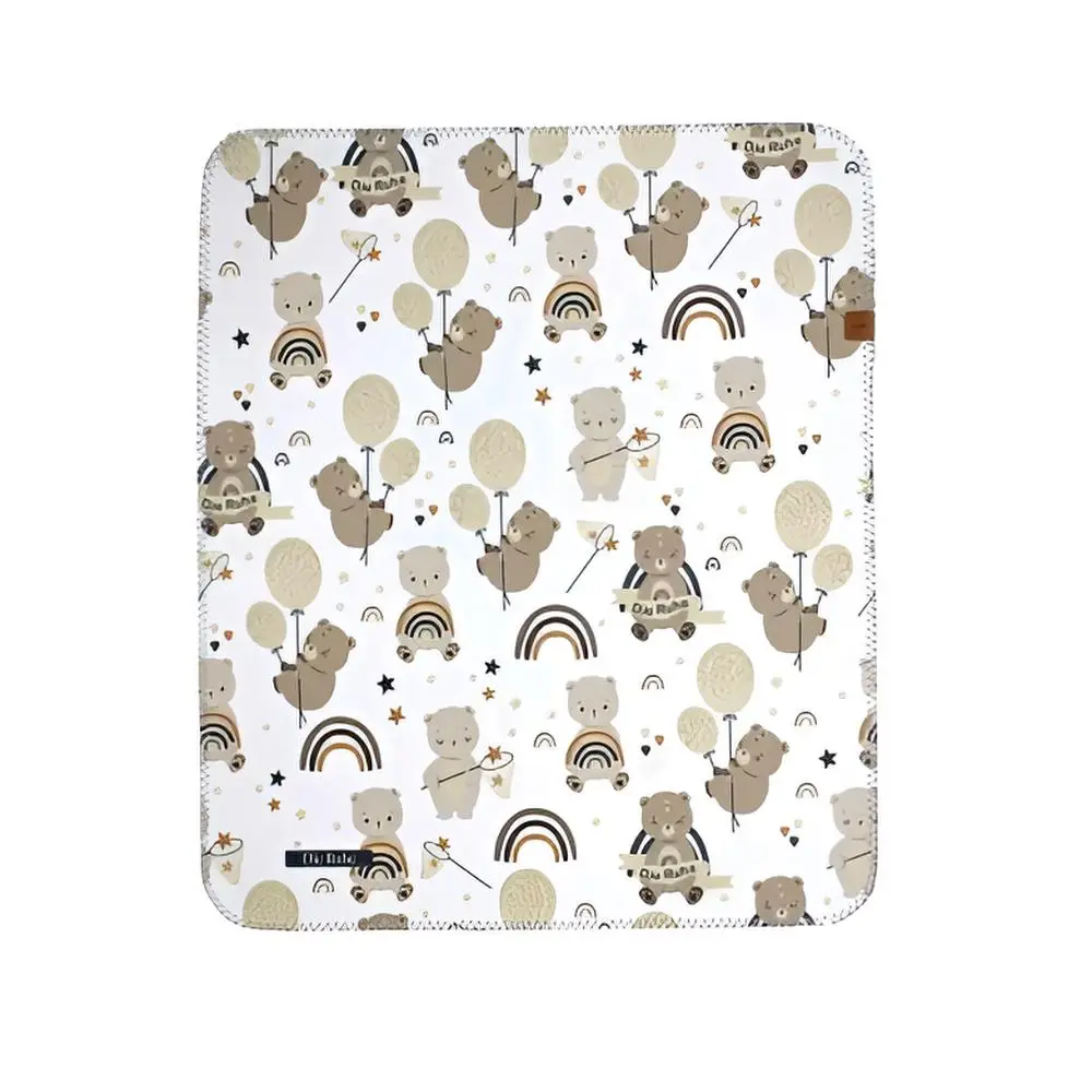 ابعاد استاندارد و ضخامت مناسب زیرانداز دی روحه امکان قرارگیری آسان روی میز تعویض، تخت یا حتی کف اتاق را فراهم میکند. زمانی که منتظرید کودک را روی سطحی امن قرار دهید، این زیرانداز با خاصیت ضدلغزش و لایه زیرین محکم، خیال شما را راحت میکند. لایه سطحی پارچهای (مخمل یا مشابه) لمس دلپذیری دارد و برای نوزادان با پوست حساس نیز مناسب است.